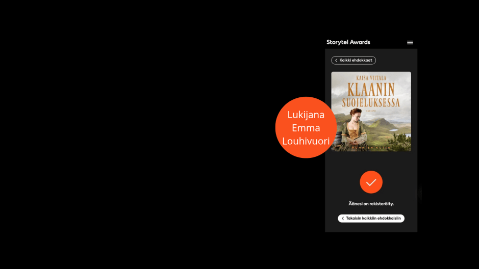 Klaanin suojeluksessa on päässyt Emma Louhivuoren lukemana äänikirjana mukaan Storytel Awards-kilpailun Romantiikka ja feelgood-kategoriaan!